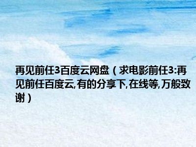 相信目前很多小伙伴对于求电影前任3:再见前任百度云,有的分享下,在线等,万般致谢都比较感兴趣,那么小编今天在网上也是收集了一些与求电影前任3:再见前任百度云,有的分享下,在线等,万般致谢相关的信息来分享给大家,希望能够帮助到大家哦。