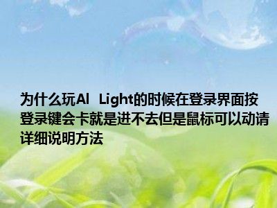 相信目前很多小伙伴对于为何我玩艾尔之光时在登录界面,一按登录按钮就卡住了,表示进不去,但是鼠标可以动,求详细解说方法!!都比较感兴趣,那么小编今天在网上也是收集了一些与为何我玩艾尔之光时在登录界面,一按登录按钮就卡住了,表示进不去,但是鼠标可以动,求详细解说方法!!相关的信息来分享给大家,希望能够帮助到大家哦。