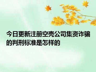 目前大家应该是对注册空壳公司集资诈骗的判刑标准是怎样的比较感兴趣的,所以今天CC就来为大家整理了一些关于注册空壳公司集资诈骗的判刑标准是怎样的方面的相关知识来分享给大家,希望大家会喜欢哦。