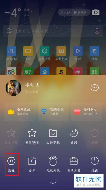 具体如下:第一步,我们先把手机里的浏览器设置成网页浏览的模式,这里以UC浏览器为例,手机里当他浏览方法也类似。我们先打开手机里的浏览器,然后点击浏览器的设置进去;