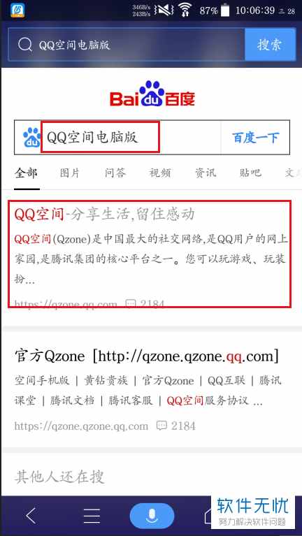 接下来,我们打开百度搜索 QQ空间电脑版,并点击官网进去;