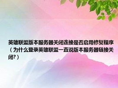 导读 相信目前很多小伙伴对于为什么登录英雄联盟一直说版本服务器链接关闭?都比较感兴趣,那么小编今天在网上也是收集了一些与为什么登录英雄联