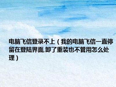 相信目前很多小伙伴对于我的电脑飞信一直停留在登陆界面,卸了重装也不管用怎么处理都比较感兴趣,那么小编今天在网上也是收集了一些与我的电脑飞信一直停留在登陆界面,卸了重装也不管用怎么处理相关的信息来分享给大家,希望能够帮助到大家哦。