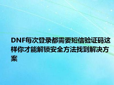 相信目前很多小伙伴对于DNF每次登陆都需要手机短信验证码,才能解开安全方式,求解决的办法。