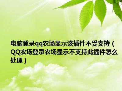 导读 相信目前很多小伙伴对于QQ农场登录农场显示不支持此插件怎么处理都比较感兴趣,那么小编今天在网上也是收集了一些与QQ农场登录农场显示不支