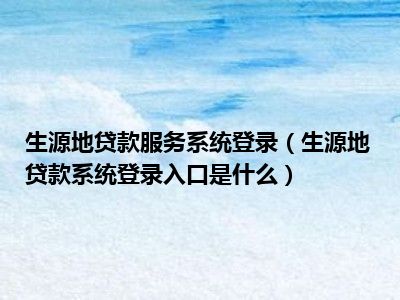 - 2022-05-24生源地贷款服务系统登录(生源地贷款系统登录入口是什么)