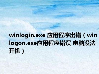 相信目前很多小伙伴对于winlogon.exe应用程序错误 电脑没法开机都比较感兴趣,那么小编今天在网上也是收集了一些与winlogon.exe应用程序错误 电脑没法开机相关的信息来分享给大家,希望能够帮助到大家哦。