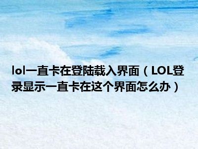 导读 相信目前很多小伙伴对于LOL登录显示一直卡在这个界面怎么办都比较感兴趣,那么小编今天在网上也是收集了一些与LOL登录显示一直卡在这个界面
