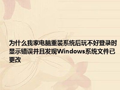 相信目前很多小伙伴对于为何我家里的电脑重装系统了之后就游戏玩不好了? 登陆的时候显示错误:发现Windows系统文件有改动都比较感兴趣,那么小编今天在网上也是收集了一些与为何我家里的电脑重装系统了之后就游戏玩不好了? 登陆的时候显示错误:发现Windows系统文件有改动相关的信息来分享给大家,希望能够帮助到大家哦。