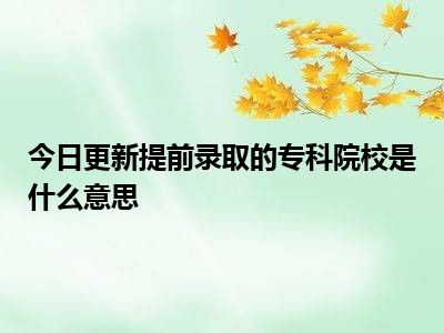 提前录取专科院校就是提前批专科院校,是指招收提前批次专科生的专科院校。