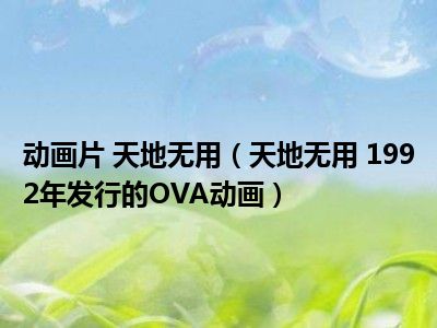 导读 目前是有很多朋友们对于天地无用 1992年发行的OVA动画这个信息比较感兴趣,那么小编也是收集了一些天地无用 1992年发行的OVA动画相关的信...