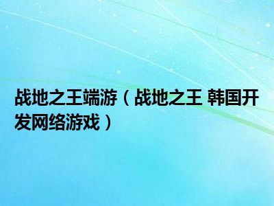 导读 目前是有很多朋友们对于战地之王 韩国开发网络游戏这个信息比较感兴趣,那么小编也是收集了一些战地之王 韩国开发网络游戏相关的信息来分...
