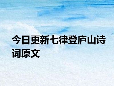 目前大家应该是对七律登庐山诗词原文比较感兴趣的,所以今天好房网小编CC就来为大家整理了一些关于七律登庐山诗词原文方面的相关知识来分享给大家,希望大家会喜欢哦。