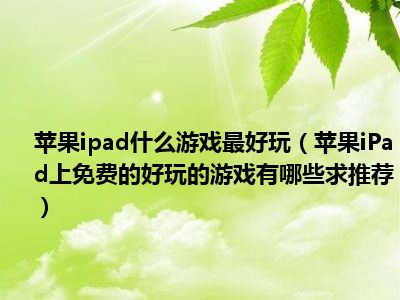 相信目前很多小伙伴对于苹果iPad上免费的好玩的游戏有哪些?求推荐都比较感兴趣,那么小编今天在网上也是收集了一些与苹果iPad上免费的好玩的游戏有哪些?求推荐相关的信息来分享给大家,希望能够帮助到大家哦。