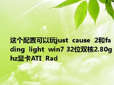 相信目前很多小伙伴对于我这配置能玩正当防卫2和消逝的光芒win7 32位 双核2.80ghz 显卡ATI Rad都比较感兴趣,那么小编今天在网上也是收集了一些与我这配置能玩正当防卫2和消逝的光芒win7 32位 双核2.80ghz 显卡ATI Rad相关的信息来分享给大家,希望能够帮助到大家哦。