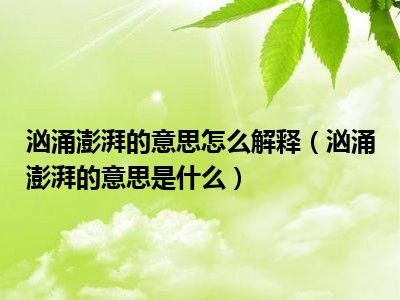 关于汹涌澎湃的意思是什么的相关内容就介绍到这里了。