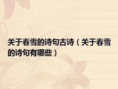 相信目前很多小伙伴对于关于春雪的诗句有哪些都比较感兴趣,那么小编今天在网上也是收集了一些与关于春雪的诗句有哪些相关的信息来分享给大家,希望能够帮助到大家哦。