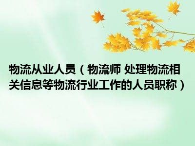 导读 目前是有很多朋友们对于物流师 处理物流相关信息等物流行业工作的人员职称这个信息比较感兴趣,那么小编也是收集了一些物流师 处理物流相...