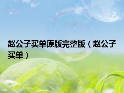 1、赵公子买单,网络流行语,表示所有的消费由赵公子买单。