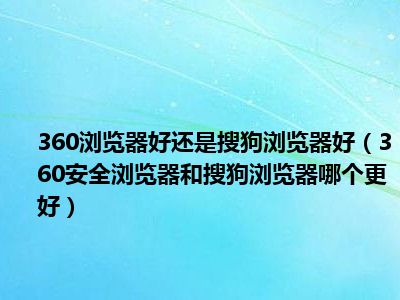 相信目前很多小伙伴对于360安全浏览器和搜狗浏览器哪个更好都比较感兴趣,那么小编今天在网上也是收集了一些与360安全浏览器和搜狗浏览器哪个更好相关的信息来分享给大家,希望能够帮助到大家哦。