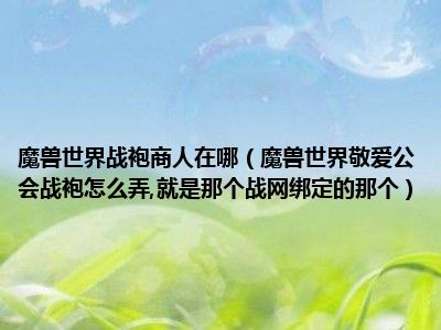 相信目前很多小伙伴对于魔兽世界敬爱公会战袍怎么弄,就是那个战网绑定的那个都比较感兴趣,那么小编今天在网上也是收集了一些与魔兽世界敬爱公会战袍怎么弄,就是那个战网绑定的那个相关的信息来分享给大家,希望能够帮助到大家哦。