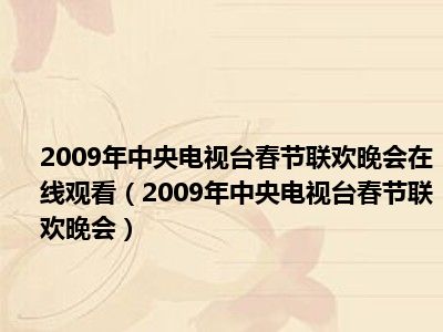 导读目前是有很多朋友们对于2009年中央电视台春节联欢晚会这个信息比较感兴趣,那么小编也是收集了一些2009年中央电视台春节联欢晚会相关的信息...