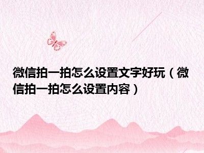 相信目前很多小伙伴对于微信拍一拍怎么设置内容都比较感兴趣,那么小编今天在网上也是收集了一些与微信拍一拍怎么设置内容相关的信息来分享给大家,希望能够帮助到大家哦。