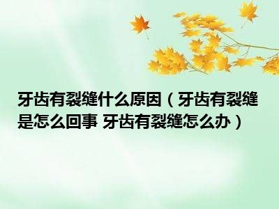 目前大家应该是对牙齿有裂缝是怎么回事 牙齿有裂缝怎么办比较感兴趣的,所以今天小编CC就来为大家整理了一些关于牙齿有裂缝是怎么回事 牙齿有裂缝怎么办方面的相关知识来分享给大家,希望大家会喜欢哦。
