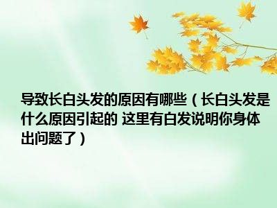 目前大家应该是对长白头发是什么原因引起的 这里有白发说明你身体出问题了比较感兴趣的,所以今天小编CC就来为大家整理了一些关于长白头发是什么原因引起的 这里有白发说明你身体出问题了方面的相关知识来分享给大家,希望大家会喜欢哦。