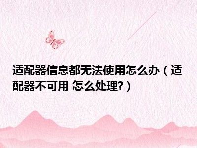 相信目前很多小伙伴对于适配器不可用 怎么处理?都比较感兴趣,那么小编今天在网上也是收集了一些与适配器不可用 怎么处理?相关的信息来分享给大家,希望能够帮助到大家哦。