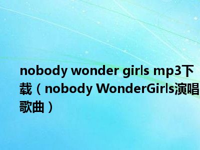 导读 目前是有很多朋友们对于nobody WonderGirls演唱歌曲这个信息比较感兴趣,那么小编也是收集了一些nobody WonderGirls演唱歌曲相关的信息来...