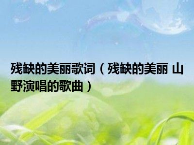 导读 目前是有很多朋友们对于残缺的美丽 山野演唱的歌曲这个信息比较感兴趣,那么小编也是收集了一些残缺的美丽 山野演唱的歌曲相关的信息来分...