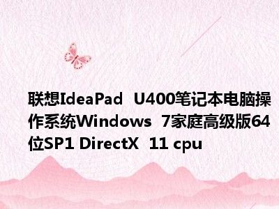 相信目前很多小伙伴对于电脑型号 联想 IdeaPad U400 笔记本电脑 操作系统 Windows 7 家庭高级版 64位 SP1 DirectX 11 cpu都比较感兴趣,那么小编今天在网上也是收集了一些与电脑型号 联想 IdeaPad U400 笔记本电脑 操作系统 Windows 7 家庭高级版 64位 SP1 DirectX 11 cpu相关的信息来分享给大家,希望能够帮助到大家哦。