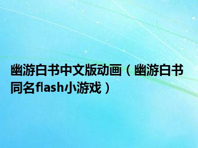 导读 目前是有很多朋友们对于幽游白书 同名flash小游戏这个信息比较感兴趣,那么小编也是收集了一些幽游白书 同名flash小游戏相关的信息来分享...