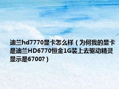 相信目前很多小伙伴对于为何我的显卡是迪兰HD6770恒金1G装上去驱动精灵显示是6700?都比较感兴趣,那么小编今天在网上也是收集了一些与为何我的显卡是迪兰HD6770恒金1G装上去驱动精灵显示是6700?相关的信息来分享给大家,希望能够帮助到大家哦。