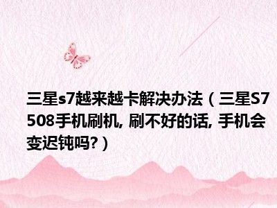 导读 相信目前很多小伙伴对于三星S7508手机刷机, 刷不好的话, 手机会变迟钝吗?都比较感兴趣,那么小编今天在网上也是收集了一些与三星S7508手...