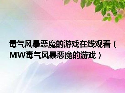 导读目前是有很多朋友们对于MW毒气风暴:恶魔的游戏这个信息比较感兴趣,那么小编也是收集了一些MW毒气风暴:恶魔的游戏相关的信息来分享给大家...