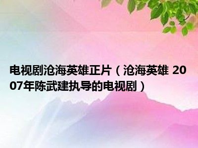 导读 目前是有很多朋友们对于沧海英雄 2007年陈武建执导的电视剧这个信息比较感兴趣,那么小编也是收集了一些沧海英雄 2007年陈武建执导的电视...