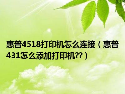 相信目前很多小伙伴对于惠普431怎么添加打印机??都比较感兴趣,那么小编今天在网上也是收集了一些与惠普431怎么添加打印机??相关的信息来分享给大家,希望能够帮助到大家哦。