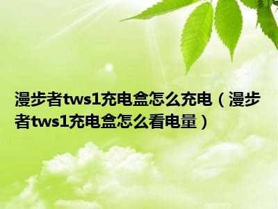 导读 1、漫步者tws1充电盒怎么看电量2、步行者tws1充电盒看不到电量。打开盖子,红灯闪6下,说明电量太低,需要充电。充电红灯亮,满灯灭。大约