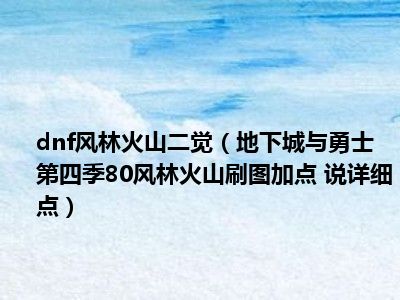 相信目前很多小伙伴对于地下城与勇士第四季80风林火山刷图加点 说详细点都比较感兴趣,那么小编今天在网上也是收集了一些与地下城与勇士