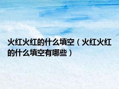 相信目前很多小伙伴对于火红火红的什么填空有哪些都比较感兴趣,那么小编今天在网上也是收集了一些与火红火红的什么填空有哪些相关的信息来分享给大家,希望能够帮助到大家哦。