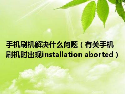 相信目前很多小伙伴对于有关手机刷机时出现installation aborted。。都比较感兴趣,那么小编今天在网上也是收集了一些与有关手机刷机时出现installation aborted。。相关的信息来分享给大家,希望能够帮助到大家哦。