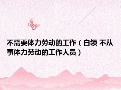 导读 目前是有很多朋友们对于白领 不从事体力劳动的工作人员这个信息比较感兴趣,那么小编也是收集了一些白领 不从事体力劳动的工作人员相关的...