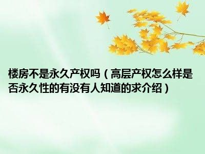 导读 目前大家应该是对高层产权怎么样是否永久性的有没有人知道的,求介绍比较感兴趣的,所以今天好房网小编CC就来为大家整理了一些关于高层产权