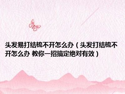 目前大家应该是对头发打结梳不开怎么办 教你一招搞定,绝对有效比较感兴趣的,所以今天小编CC就来为大家整理了一些关于头发打结梳不开怎么办 教你一招搞定,绝对有效方面的相关知识来分享给大家,希望大家会喜欢哦。