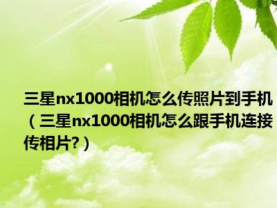 相信目前很多小伙伴对于三星nx1000相机怎么跟手机连接传相片?都比较感兴趣,那么小编今天在网上也是收集了一些与三星nx1000相机怎么跟手机