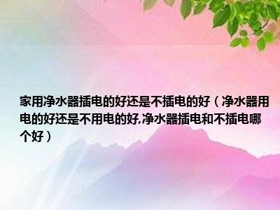 目前大家应该是对净水器用电的好还是不用电的好,净水器插电和不插电哪个好比较感兴趣的,所以今天小编CC就来为大家整理了一些关于净水器用电的好还是不用电的好,净水器插电和不插电哪个好方面的相关知识来分享给大家,希望大家会喜欢哦。
