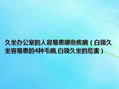 目前大家应该是对白领久坐容易患的4种毛病,白领久坐的危害比较感兴趣的,所以今天小编CC就来为大家整理了一些关于白领久坐容易患的4种毛病,白领久坐的危害方面的相关知识来分享给大家,希望大家会喜欢哦。