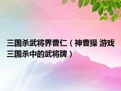 1、神曹操是游卡桌游推出的桌上游戏《三国杀》中的一张武将牌。